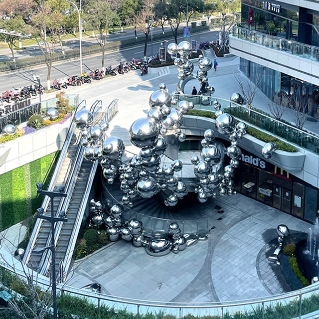 购物商场镜面不锈钢气球雕塑具有诸多优点。它不仅坚固耐用,能抵御各种自然环境的侵蚀,而且具有良好的可塑性,能够塑造出丰富多样的造型。从现代简约风格到古典优雅的艺术作品,不锈钢雕塑都能完美呈现。