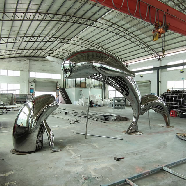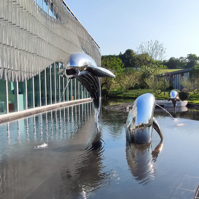 水景镜面不锈钢江豚雕塑具有诸多优点。它不仅坚固耐用,能抵御各种自然环境的侵蚀,而且具有良好的可塑性,能够塑造出丰富多样的造型。从现代简约风格到古典优雅的艺术作品,不锈钢雕塑都能完美呈现。