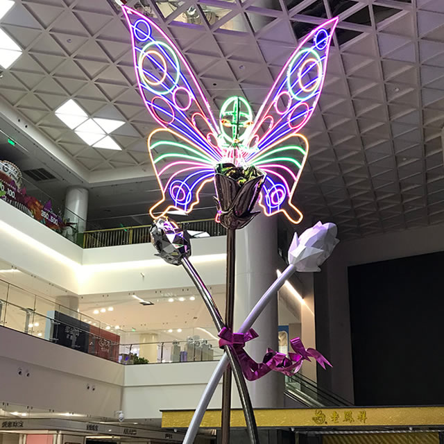 购物商场不锈钢七彩蝴蝶雕塑