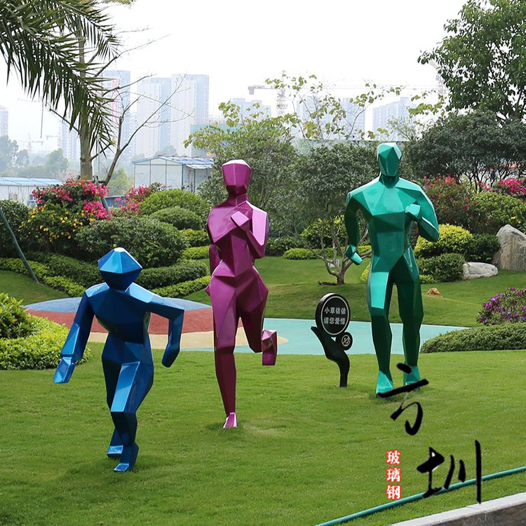 几何多切面跑步运动玻璃钢人物雕塑,也可来图定制任意尺寸款型的雕塑产品,玻璃钢产品重量轻、强度大、韧性好、不开裂、不破碎、耐水、易着色、易塑形,室内室外皆适宜摆放,旅游景点、度假村、花园小区、娱乐场所、园林建筑、商厦商场摆放能大大增加客流量,是引商招财的可能之选。玻璃钢产品有着良好的市场前景,绿色环保无污染、既能点缀环境又能美化空间。