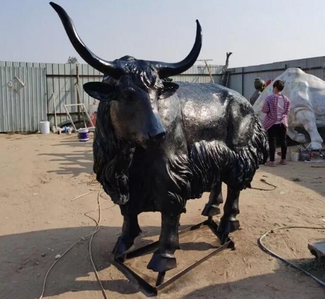 玻璃钢牦牛雕塑还原了牦牛的造型,象征着坚韧不拔的精神,很多企业放置这样的雕塑就是为了激励员工,激发员工的激情和工作的热情。我们制作的这款牦牛雕塑长度2.4米,高度1.6米,可以制作各种不同的颜色,如果您有需求,可以联系我们。