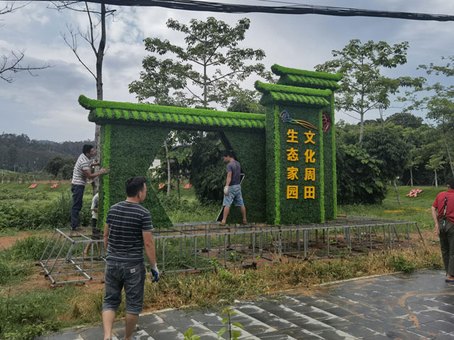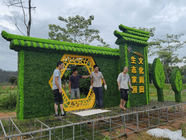 绿雕植物雕塑的制作过程也是一项复杂而精细的工程。首先,设计师需要根据场地环境和客户需求进行创意设计,绘制出详细的设计图纸。然后,选择合适的植物品种,并进行精心培育和修剪,使其达到最佳的生长状态。接着,施工人员按照设计图纸进行现场安装和造型,将植物固定在特定的框架上,形成完整的雕塑作品。最后,还需要对绿雕植物雕塑进行定期的养护和管理,确保植物的健康生长和雕塑的美观效果。