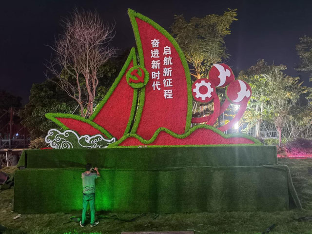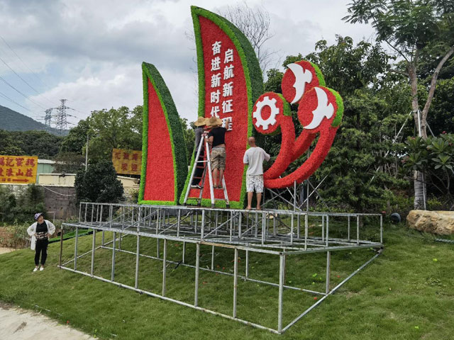 在艺术表现方面,绿雕植物雕塑更是独具匠心。设计师们通过精心挑选不同颜色、形状和纹理的植物,运用高超的造型技巧,将植物打造成各种栩栩如生的形象,如动物、人物、建筑等。这些雕塑作品不仅具有强烈的视觉冲击力,还能够传达出丰富的文化内涵和情感信息。有的绿雕植物雕塑以历史故事为主题,展现了城市的悠久历史和文化底蕴;有的则以现代艺术风格呈现,体现了城市的时尚与活力。