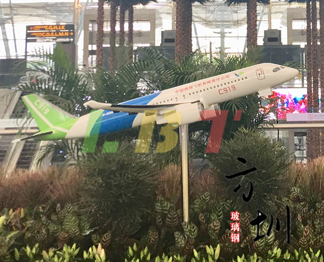 广州机场玻璃钢仿真飞机雕塑制作工艺:雕刻泥稿-泥稿确认-模具制作-产品毛胚制作-表面效果处理-包装。