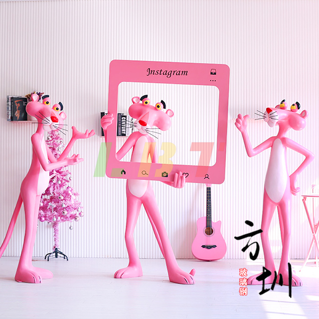 玻璃钢卡通粉红豹雕塑