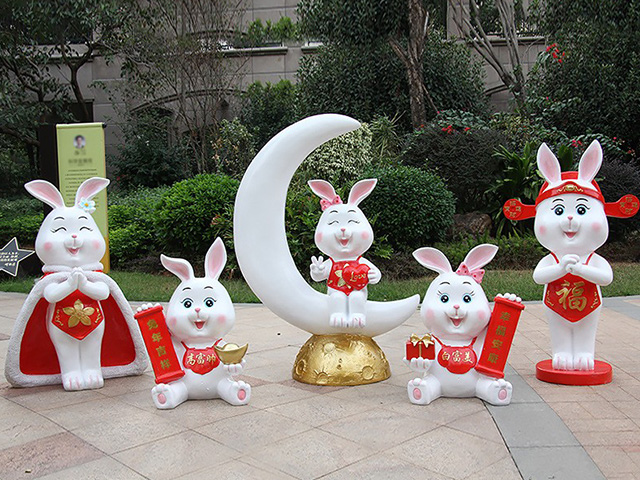 2023年兔年玻璃钢卡通恭贺新春雕塑维护保养: