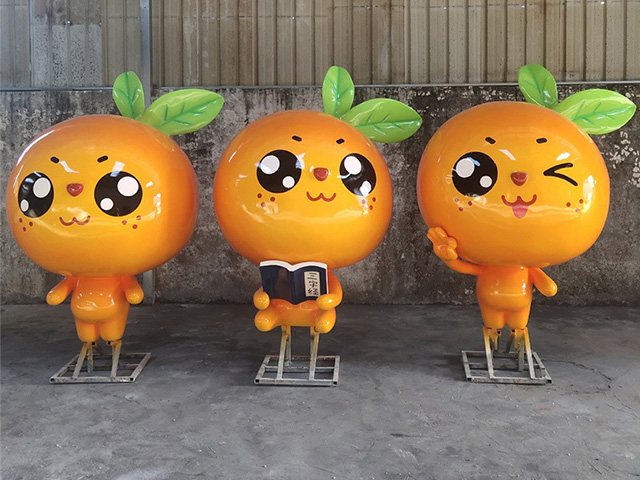 玻璃钢卡通形象橘子雕塑是一种雕塑成品类型,包括人物、动物、花草等多种表现形式。雕塑一般分为圆雕和浮雕两种类型,简单来 说,圆雕产品就是三维立体类雕塑(比如仿真人雕塑),而浮雕则为部分雕塑(如校园墙体雕塑)