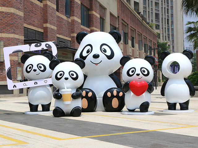 玻璃钢卡通打卡网红熊猫雕塑是一种雕塑成品类型,包括人物、动物、花草等多种表现形式。雕塑一般分为圆雕和浮雕两种类型,简单来 说,圆雕产品就是三维立体类雕塑(比如仿真人雕塑),而浮雕则为部分雕塑(如校园墙体雕塑)