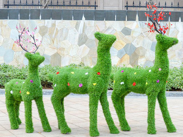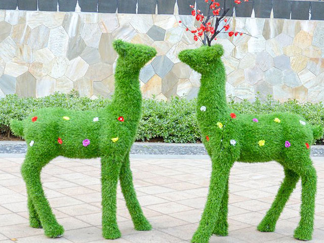 园林景观玻璃钢加植绒梅花鹿雕塑特性:具有可塑性强(只要您想的出造型,玻璃钢就能做出成品),相对来说易成型、质轻,强度高,耐腐蚀,相对来说成本相对较低、表面效果多样等特点。