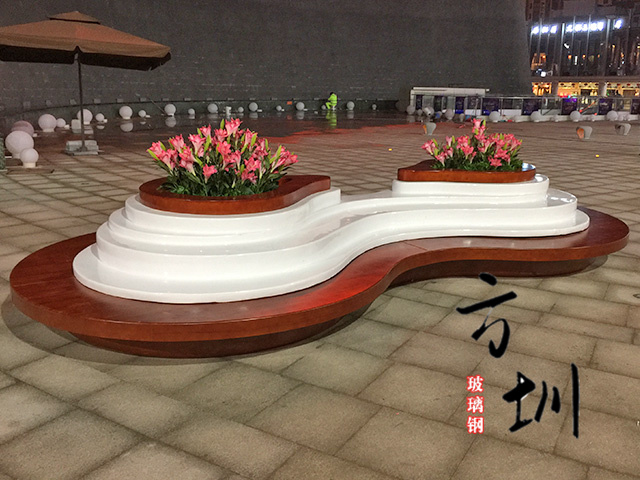 ? 商场创意玻璃钢花盆座椅型号为ZX253,产品尺寸规范为长5500mm,宽2600mm,高800mm。严格按江西南昌商场的花盆座椅规划图纸进行制造,以甲方承认的模型为准,然后选用功能优异的玻璃纤维及不饱和聚酯为主要原料结合水曲柳木制造而成带花盆功能的玻璃钢座椅,玻璃钢部分做白色亮光作用,花盆座椅造型精巧整体精致耐看。产品质量契合国家规范,玻璃钢座椅防火功能满意国家消防装备质量检测中心的测试规范要求。