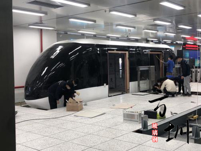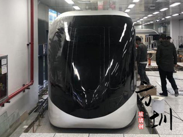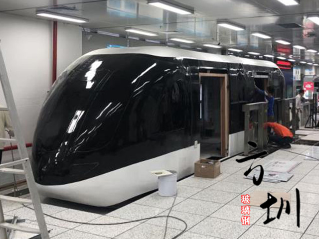 ? 玻璃钢轨道交通云轨模型雕塑型号为ZX429,尺度规格为10800*2200*2500mm。造型严格参照客户供给轨道交通模型图纸打样,基材选用稳定性较强的196树脂及铂金玻璃纤维布或无碱纤维毡复合而成。玻璃钢地铁高铁模型分段制作,与甲方供给的门框组装,毛坯出来后通过打磨、用原子灰修补产品针孔及合模线、抛光、喷底漆、喷面漆、喷黑色汽车专用漆。内部预留孔位装置模拟设备,精约时尚外观设计和仿真内饰,整体风格极具科技未来感。