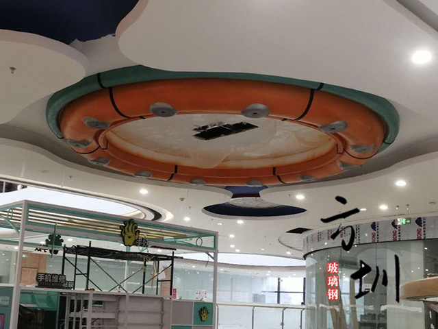 广西桂林万达商场玻璃钢造型吊顶装修型号为ZX466,尺度规格为φ5000mm,预留孔位装射灯。方圳严厉根据规划方尺度造型定制,基体选用196优质树脂+玻璃纤维白金布增强资料等复合而成。由方圳工厂出产制作,工人现场装置固定。外表打磨光滑做海绿色和橙色油漆效果,质轻高强安全系数大抗老化,不褪色,更耐用。广西桂林万达广场玻璃钢吊顶天花板的装修,是室内装修的重要部分之一,全面提高大型购物中心、高级百货、大型影院、住宅城市综合体室内装修形象。