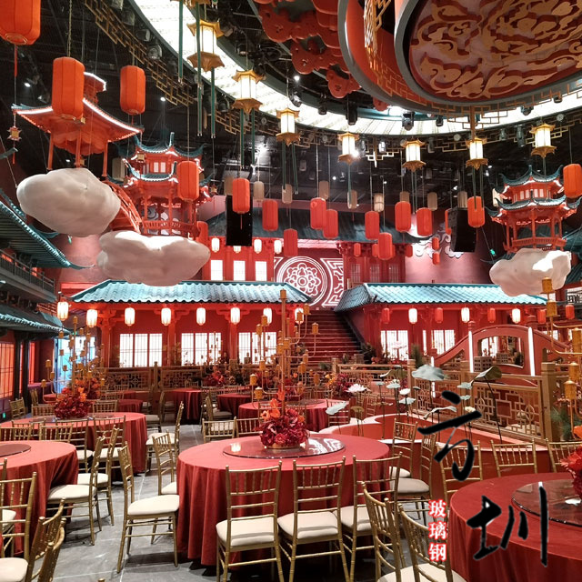 玻璃钢云朵凉亭中式婚庆宴会厅装饰案例